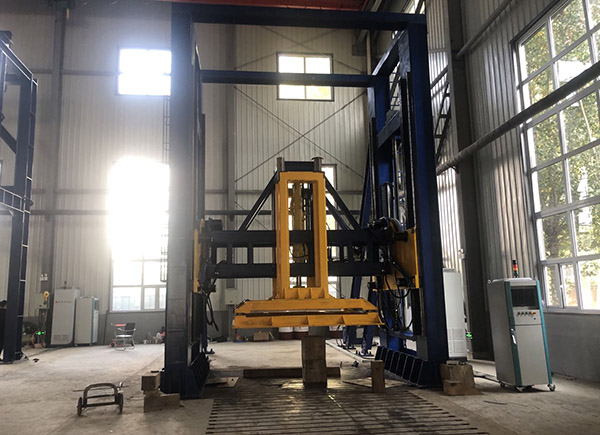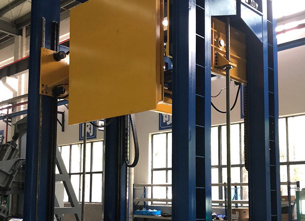 该试验台采用四柱式桁架机架,由钢板焊接成工字钢并与型钢用螺栓连接而成,用地脚螺栓与地基紧固;采用液压油缸进行加载,力传感器及位移传感器进行数据记录。