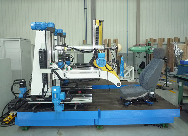 凯瑞装备座椅&头枕试验台可提供三工位头枕及座椅静态性能试验,主要由伺服电机提供加载力、调节加载角度;摆锤系统主要由提升机、换向阀、编码器、冲击头、立柱、支架等组成,可对头枕进行冲击试验。