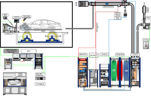 可在室内测试汽车动力性、燃油经济性(油耗)、多工况排放、电动车续航里程、整车发动机冷却散热能力等主要性能;