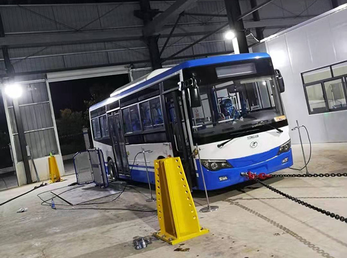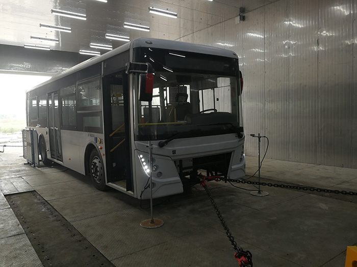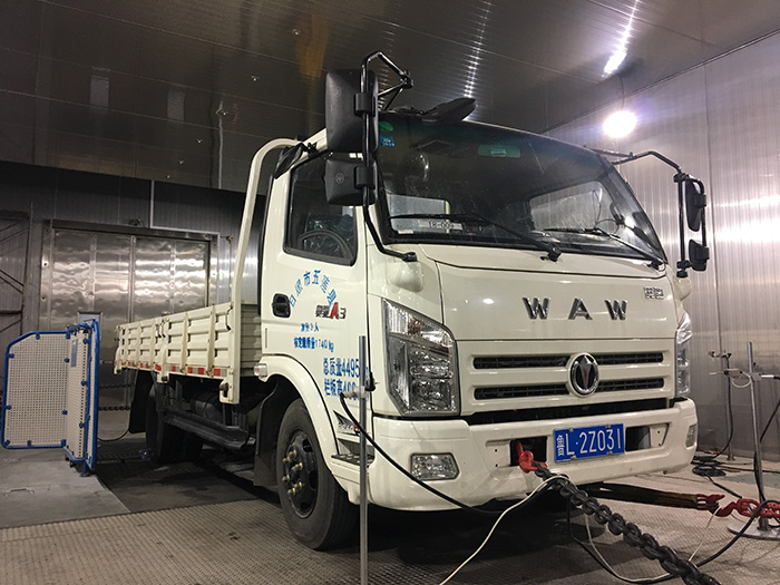 其用滚筒模拟路面,通过控制试验条件,使周围环境影响减至最小,同时通过功率吸收加载装置模拟汽车行驶阻力、控制行驶状况,进行符合实际的复杂循环试验,重复精度高。装备环境仓后,还可在不同环境条件下开展相关整车(高温、低温)性能试验研究。